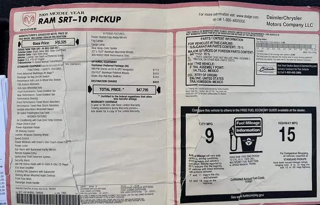 “En lågmilad SRT-10 i 100% originalskick, fin historik och utan modifieringar, ett perfekt exemplar för samlaren!”
