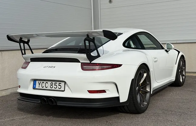 En 2015 Porsche 911 GT3 RS av 991-generationen med eftertraktade specifikationer som PCCB, front-axle lift, LED-strålkastare, 90-liters tank, säkerhetsbur och PCM med navigation. Bilen är enligt säljaren importerad från Tyskland, har fronten skyddsfolierad sedan ny och en dokumenterad servicehistorik med ifylld servicebok. För entusiaster som söker en renodlad RS med tydlig utrustningsprofil och uppgiven dokumentation erbjuds detta exemplar på Bidders Highway.