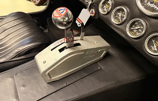 - Växellåda: Ford E40D automat, 3-steg enligt säljaren, B&M Pro Ratchet Shifter