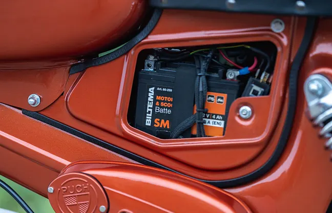 Modifieringar och förbättringar Enligt säljaren är motorn uppgraderad med 70 kubikare, racingvev, trimförgasare och 32 mm avgasböj samt elektronisk tändning. Chassit har försetts med PUCH racing-framhjul med större bromstrumma. Karossdetaljerna är hellackerade där tank och framskärm är linjerade. Elsystemet är uppgraderat till 12 volt med batteri och tändningslås.