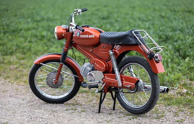 Fordonet är nyrenoverat enligt säljaren och uppvisar en mycket fin customlack med linjer på tank och framskärm. Kuriosa i sammanhanget är den uppgivna motoruppsättningen med 70-kubikscylinder, trimförgasare och elektronisk tändning, kombinerat med ett förstärkt bromspaket fram.