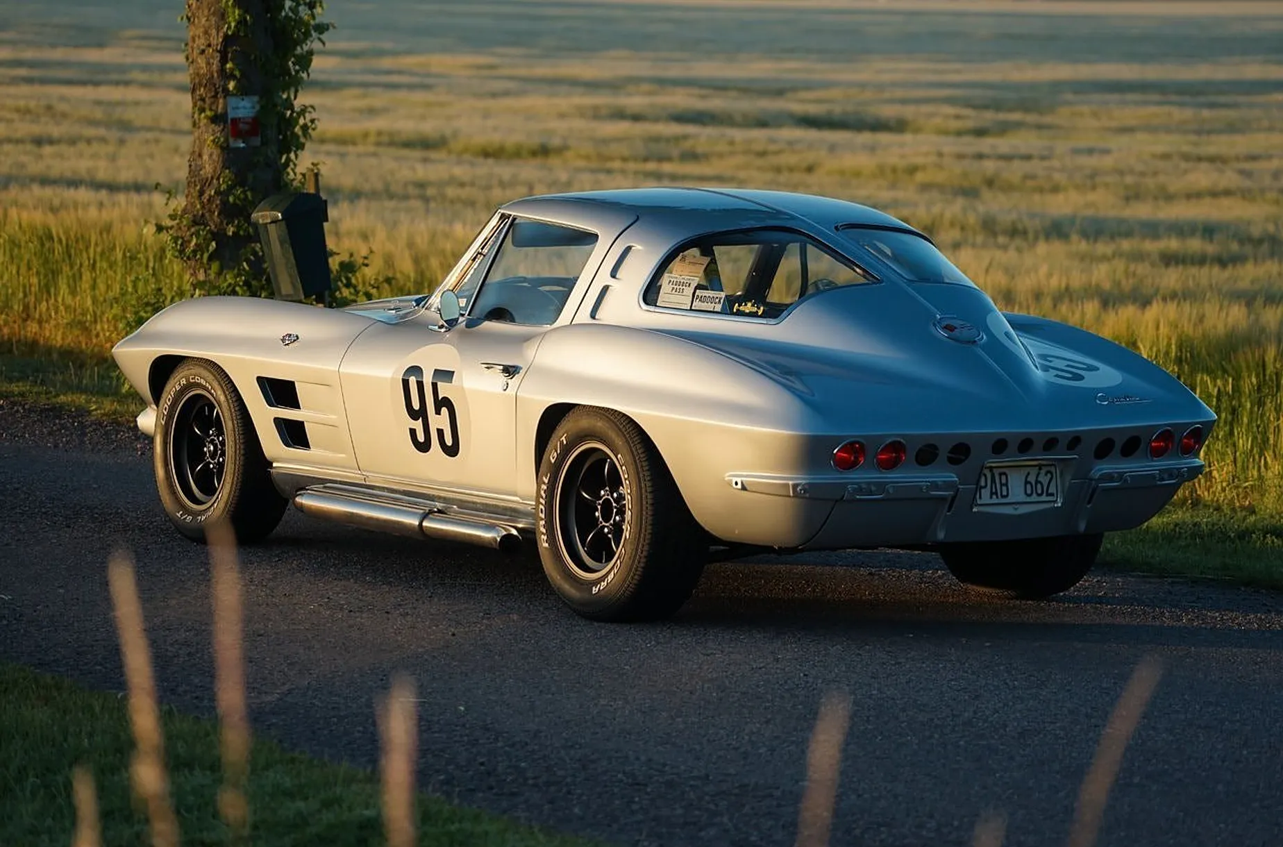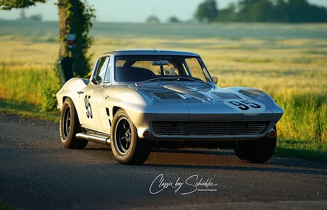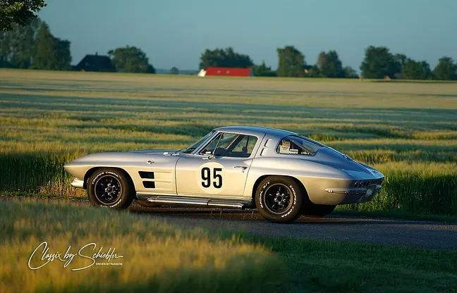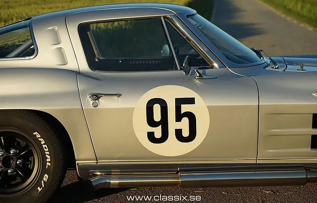 1963 Corvette C2 Split Window FIA-spec En riktig holy grail från den amerikanska bilvärlden. 1963 Corvette C2 Split Window, byggd för att efterlikna en autentisk tävlingsbil och levererad med FIA-papper. Skicket är mycket bra och för den som vill återställa bilen till originalutseende medföljer delar som helt nya stötfångare och originalfälgar.