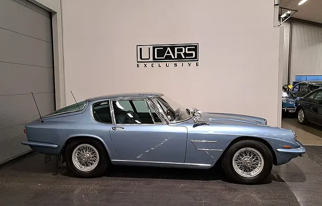 En Maserati Mistral från 1968 i färgen Celeste Chiaro över svart läderinteriör. Mistral var en tvåsitsig sportvagn och tillverkades i 968 exemplar och endast 8 stycken finns registrerade i Sverige och endast 3 stycken med 4000 motorn. Worldwide så ligger priserna på 165.000-239.000 EUR och även mer därtill beroende på skick och det finns väldigt få Mistral ute till försäljning. Senaste ägaren har ägt bilen sedan 1997 så i 28 år. Står som Svensksåld, årsmodell 1968 men registrerad ny i Sverige 1975. Troligtvis så har bilen använts som reklambil, visningsbil eller liknande hos en Maseratihandlare.