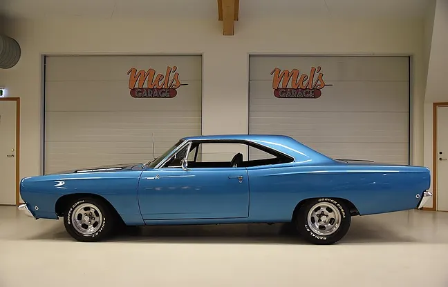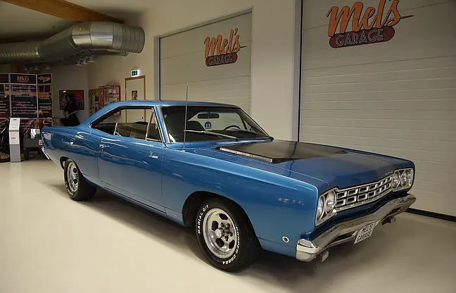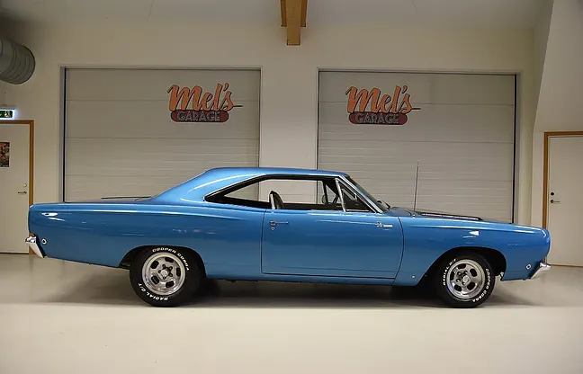 Mel’s Garage specialisten på förmedling av klassiska bilar med konstant stor efterfrågan på varierande modeller i olika prisklasser, All form av finansiering erbjuds, Wasa Kredit med 20% kontant eller My Money, Vi kan leverera eller hämta er bil över hela Sverige i öppen eller heltäckt transport till fördelaktigt pris. Totalt ca 100 bilder på denna bil finns på http://www.bytbil.com/handlare/mels-garage-6856, Denna gång har vi fått in en Plymouth Road Runner 2-dr HT 1968. Bilen gick igenom en omfattande renovering i början av 2000- talet av dåvarande ägare i Uddevalla. V8 440 borrad 0, 30. Aluminium insug. Holley fyrports förgasare. Elektronisk tändning. A-833 4 växlad manuell växellåda. Trumbromsar fram och bak. Servostyrning. 8 ¾ bakaxel. Lackerad i "Electric Blue" original kulören som fortfarande är i ett mycket bra skick. Bra inpassning på dörrar och luckor. Kromet runt bilen är i ett fint bruksskick där stötfångaren fram är i något sämre skick. Inredningen i svart vinyl är i ett riktigt bra skick rakt igenom med bälten fram. Innertaket har lite veck och skulle kanske sträckas något. Aluminiumfälgar typ "slottsmags" med 225/60-14 fram och 255/60-15 bak med ca 6mm mönsterdjup. Bilen såldes ny med en 383 motor men har idag en 440 och massor med körglädje. Allmänt riktigt trevlig Road Runner som är underhållande att köra med massor av kraft och som känns stadig på vägen. En härlig muskelbil helt enkelt. Besiktigad 2016-09-21 och nu besiktningsbefriad. Alltid testprotokoll & ca 100 bilder på alla våra bilar. Se alla våra bilar filmade på vår Youtubekanal. www.youtube.com/melsgaragesweden