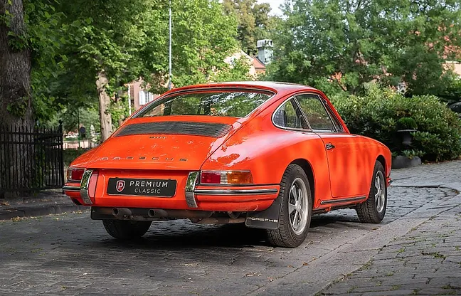 En svensksåld väldigt fin 911T i den smakfulla färgsättning Signal orange och svart interiör med mycket god historik, få ägare sedan den rullade ut till sin första ägare hösten 1968 i Arboga. En intressant ägarhistoria som finns dokumenterad bland annat i Tidningen Porscheägaren 2017, 1. Mycket dokumentation i form av underhåll och besiktningar, brev och noteringar från tidigare ägare, bilen vann bland annat Concours ´d élégance redan 1982. Restaurerad i början på 2000 talet men har tagits väl om hand och använts sparsamt och är i dag fortfarande i ett enastående bra skick. En tidskapsel i ett mycket fint orginalskick!