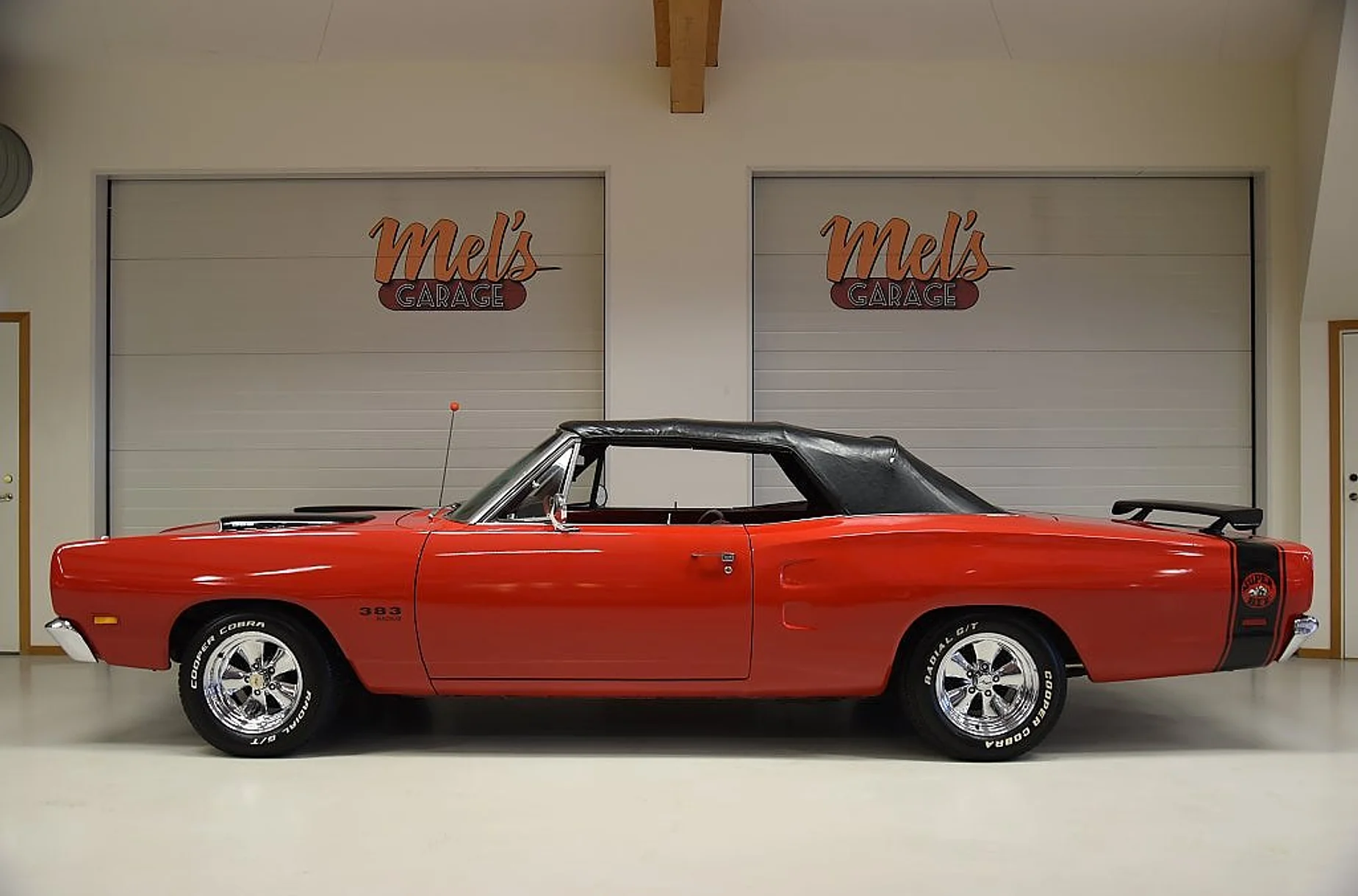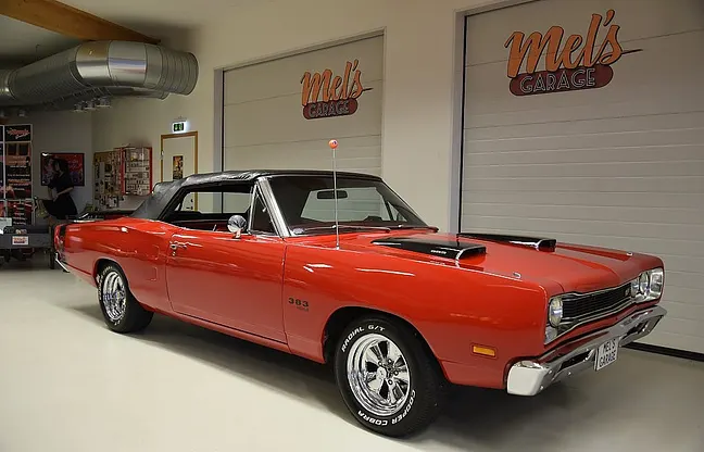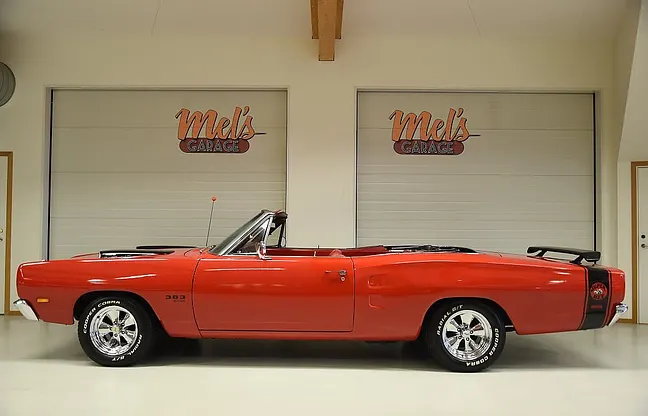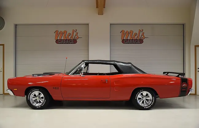 Mel’s Garage specialisten på förmedling av klassiska bilar med konstant stor efterfrågan på varierande modeller i olika prisklasser, All form av finansiering erbjuds, Wasa Kredit med 20% kontant eller My Money, Vi kan leverera eller hämta er bil över hela Sverige i öppen eller heltäckt transport till fördelaktigt pris. Totalt ca 100 bilder på denna bil finns på http://www.bytbil.com/handlare/mels-garage-6856, Denna gång har vi fått in en Dodge Coronet 500 Cabriolet Super Bee Clone 1969. Bilen såldes ny med V8 318 men idag sitter en V8 383 Magnum under huven. Motorn är nyrenoverad och borrad 0.30. Motorn är knappt inkörd och har rullat ca 200 felfria mil. 727 automatlåda. Avgassystem i rostfritt ända framifrån med tillhörande x-pipe. Bromsskivor fram och trummor bak med servo. Styrservo. Bilen fick en lackering för ca åtta år sedan och håller idag ett fint bruksskick med lite små skavanker. Elstyrd svart skinn cab med glasruta i ett mycket fint skick där cab säcken är dålig. Inredning i röd vinyl som är i ett kalas skick rakt igenom. Ny retrostereo. Extra mätare till oljetryck temp och laddning. Bälten fram och bak i matchande färg som inredningen. Krom och lister är i ett fint bruksskick. Nyligen monterades nya stötdämpare fram och Hi Jackers bak samt även en framvagnsjustering då nya framdäck monterades. 5 ekrade kromfälgar med 235/60-15 fram och 245/60-15 bak med ca 8mm fram och 6mm mönsterdjup. En riktigt trevlig Dodge Coronet Cab med ett mycket fint helhetsintryck och som går fint på vägen samt med en härlig drivlina och rejält med kraft. Motor bytet är inskrivet hos transportstyrelsen. Besiktigad 2022-08-24 och nu besiktningsbefriad. Alltid testprotokoll & ca 100 bilder på alla våra bilar. Se alla våra bilar filmade på vår Youtubekanal. www.youtube.com/melsgaragesweden