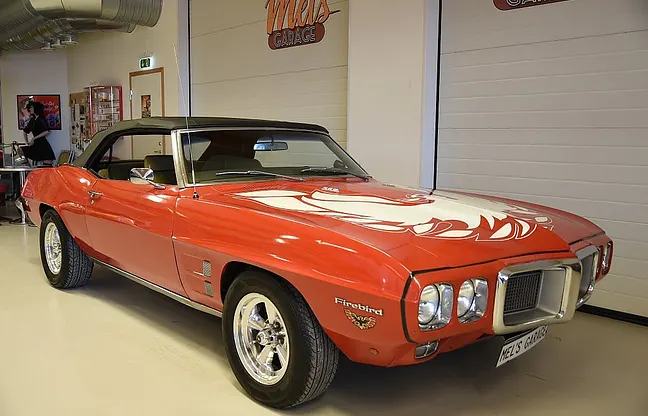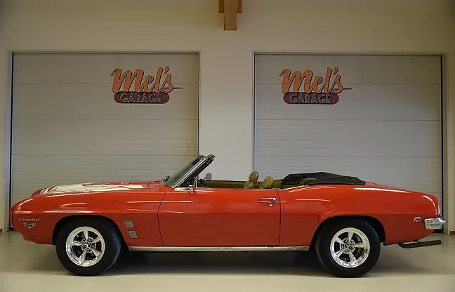 Mel’s Garage specialisten på förmedling av klassiska bilar med konstant stor efterfrågan på varierande modeller i olika prisklasser, All form av finansiering erbjuds, Wasa Kredit med 20% kontant eller My Money, Vi kan leverera eller hämta er bil över hela Sverige i öppen eller heltäckt transport till fördelaktigt pris. Totalt ca 100 bilder på denna bil finns på http://www.bytbil.com/handlare/mels-garage-6856, Denna gång har vi fått in en Pontiac Firebird Cabriolet 1969. V8 350 2v som går riktigt fint lättstartad och inga konstigheter. TH 350 3vxl automatlåda. Original 10 tum bakaxel. Bromsskivor fram och trummor bak med servo. Styrservo. Hi Jackers. Underredsbehandlad. Lackeringen är i bruksskick och har sina skavanker och har varit så länge så det blir inte värre. Kromet runt bilen håller också bruksskick. Inredning i Beige vinyl är i ett bra skick och ser helt okej ut. Extramätare är monterat för motortemp oljetryck och laddning. Extra kylfläkt monterad på en nyare aluminium kylare. Elstyrd svart vinyl cab i ett mycket bra skick och ett svart cabskydd finns också. Nyare American Racing hjul med 215/65-15 fram och 235/60-15 bak med ca 7mm mönsterdjup. En trevlig Pontiac Cab med en driftsäker drivlina som fungerar utan anmärkning så bara vrida om nyckeln och åka iväg. Så varför inte ta chansen att åka med nedfällt tak på sommarens cruisingar. Riktigt trevlig bil överlag som inte skäms för sig. Besiktigad 2018-06-13 och nu besiktningsbefriad. I trafik 1975-10-10 så har funnits i Sverige länge. Alltid testprotokoll & ca 100 bilder på alla våra bilar. Se alla våra bilar filmade på vår Youtubekanal. www.youtube.com/melsgaragesweden