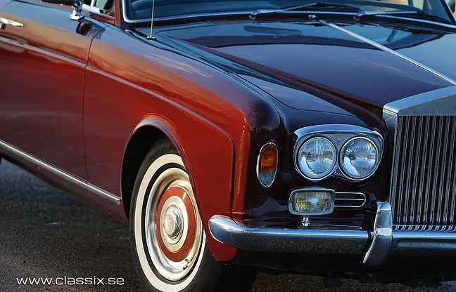 Den här bilen, en Rolls-Royce Silver Shadow Drophead Coupé, är en tidig föregångare till Corniche och byggdes av Mulliner Park Ward. Den lanserades 1967 som en cabrioletversion av Silver Shadow. Inredningen är klädd i svart läder(orginal) och har elektriskt justerbara säten samt häftiga detaljer som små minibarer i dörrarna. Under huven sitter en 6, 2-liters V8-motor som tillsammans med den mjuka fjädringen ger en fantastisk och unik körupplevelse. Bilen har också en spännande historia, då den en gång ägdes av den svenska entreprenören ”Sko Uno”.