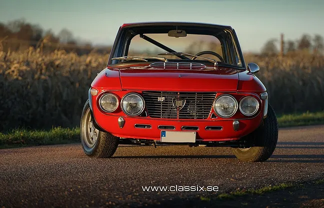 En tidig Fulvia HF, kallad “1.6” och inte “1600”. Den tillverkades endast under två år i 1 258 exemplar, och denna första version är betydligt mer extrem än efterföljaren.