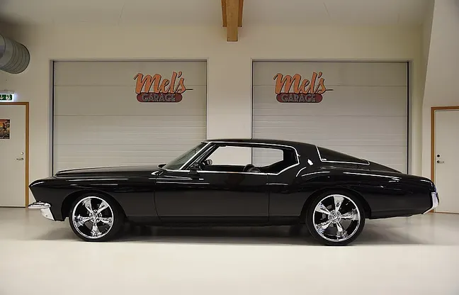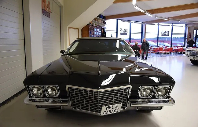 Mel’s Garage specialisten på förmedling av klassiska bilar med konstant stor efterfrågan på varierande modeller i olika prisklasser, All form av finansiering erbjuds, Wasa Kredit med 20% kontant eller My Money, Vi kan leverera eller hämta er bil över hela Sverige i öppen eller heltäckt transport till fördelaktigt pris. Totalt ca 100 bilder på denna bil finns på http://www.bytbil.com/handlare/mels-garage-6856, Denna gång har vi fått in en Buick Riviera 2-dr HT 1972 i ett helt underbart skick rakt igenom där -71ans bagage lucka med dom fräna luftintagen är monterad. V8 455 4v med Edelbrock insug och Holley förgasare. Brytarlös tändning. TH 400 automatlåda. 12 bultad bakaxel. Skivbromsar fram och bak med servo. Servostyrning. ny kardan med knutar. Luftfjädring fram och bak med tre stycken förprogrammerade lägen. Så det är lätt att komma iväg att trycka på en knapp bara. Lackerad i en blank svart kulör med ett mycket bra resultat. Inga dörrhandtag utan öppnas med fjärrdosa. Inredning i svart soft skinn är även den nära inpå utställningsskick med Elstol förare. Elhissar fram och bak. Tonade rutor med solfilm på bakrutorna. Bälten fram. AC som kyler. Farthållare (fungerar ej). Ny överdel på instrumentbrädan. Tilt ratt. En modern stereo med BT AUX CD baslåda och slutsteg i bagagerum så det spelar på bra. Kromade fälgar med 245/35-20 fram och 265/35-22 bak med ca 6mm mönsterdjup. En Buick Riviera ser man sällan ute på annons och detta exemplar är något utöver det vanliga som bör ses live i vår utställningshall för att uppskatta det fina skicket. En bekväm och skön åkbil som går fint i drivlinan så som på vägen och sticker ut rejält med det fina skicket. Besiktigad 2021-05-31 och nu besiktningsbefriad. Alltid testprotokoll & ca 100 bilder på alla våra bilar. Se alla våra bilar filmade på vår Youtubekanal. www.youtube.com/melsgaragesweden