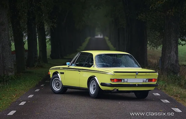 BMW 3.0 CSL är en lättvikts version av E9-coupén, framtagen för att möta racing krav för European Touring Car Championship. Endast 1265 bilar tillverkade och för att minska vikten använde BMW tunnare stål samt aluminium dörrar, huv och baklucka. Just denna CSL, har genomgått en omfattande renovering som avslutades 2022. Interiören är enkel men funktionell, medan motor och mekanik har förbättrats med en 3, 8-liters motor på 345 hk och en femväxlad låda.