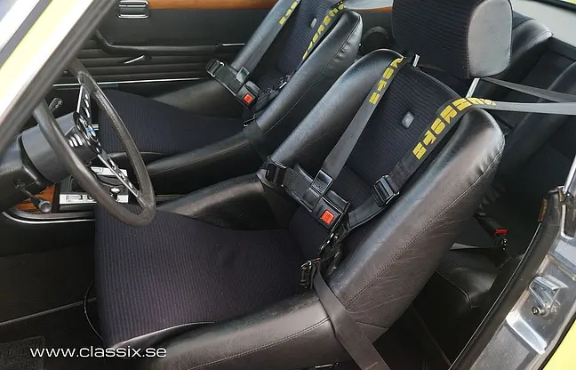 Engine and Mechanics: This is where this BMW E9 3.0 CSL differs slightly from the original. The original 3.0-liter engine has been swapped for a 3.5-liter, which has been further tuned with a different crankshaft to increase displacement to 3.8 liters. The engine is fitted with headers, resulting in an output of 345 hp. In addition to the power, the car delivers an incredible exhaust and induction noise from the open air filters. The engine is paired with a five-speed gearbox and short shifter, making for very tight and precise shifts. The fifth gear allows for comfortable cruising at highway speeds with moderate RPM. The engine was fully rebuilt in 2012 and has not been driven extensively since. Alongside the engine rebuild, the car was dynoed to provide exact power figures. All bushings have been replaced and upgraded, resulting in handling that feels as good as new.