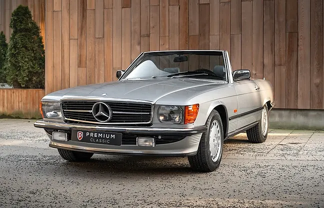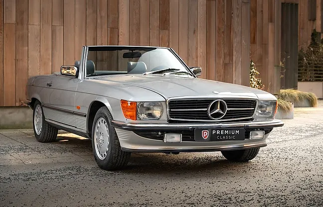 En mycket fin 560 SL (R107) i Astral Silver metallic (735O) med grå interiör (278) och blå cabriolet samt hardtop i bilens färg. Denna bil har genomgått vår REFINED process med en total genomgång exteriört och interiört samt tekniskt och restaurerats med ny lackering i orginalkulör och fått restaurerad inredning, fälgar och mycket andra nya delar och även uppdaterad med EU specifikation med nya strålkastare samt stötfångare, Ny retrostereo med Bluetooth. Välkommen att kontakta oss för fabriksspecifikation och mer information. Premium REFINED är vår egen kvalitetssäkrade process sedan många år för att återskapa moderna klassiker till – i princip så nära nyskick man kan komma utan en kostsam full restaurering. Processen omfattar många moment utifrån analys till klar slutprodukt med tonvikten på att skapa driftsäkra och fina moderna klassiker som kan brukas varje dag om man vill! Kort sagt – en modern klassiker att njuta av! Vi har en stark kärlek till Mercedes-Benz SL modeller och har fokuserat på dessa och främst generation 2 av R107 karossen men nu även efterföljaren R129!