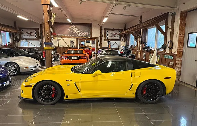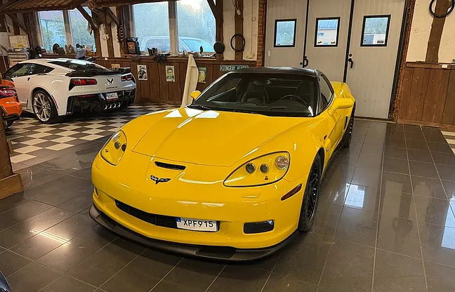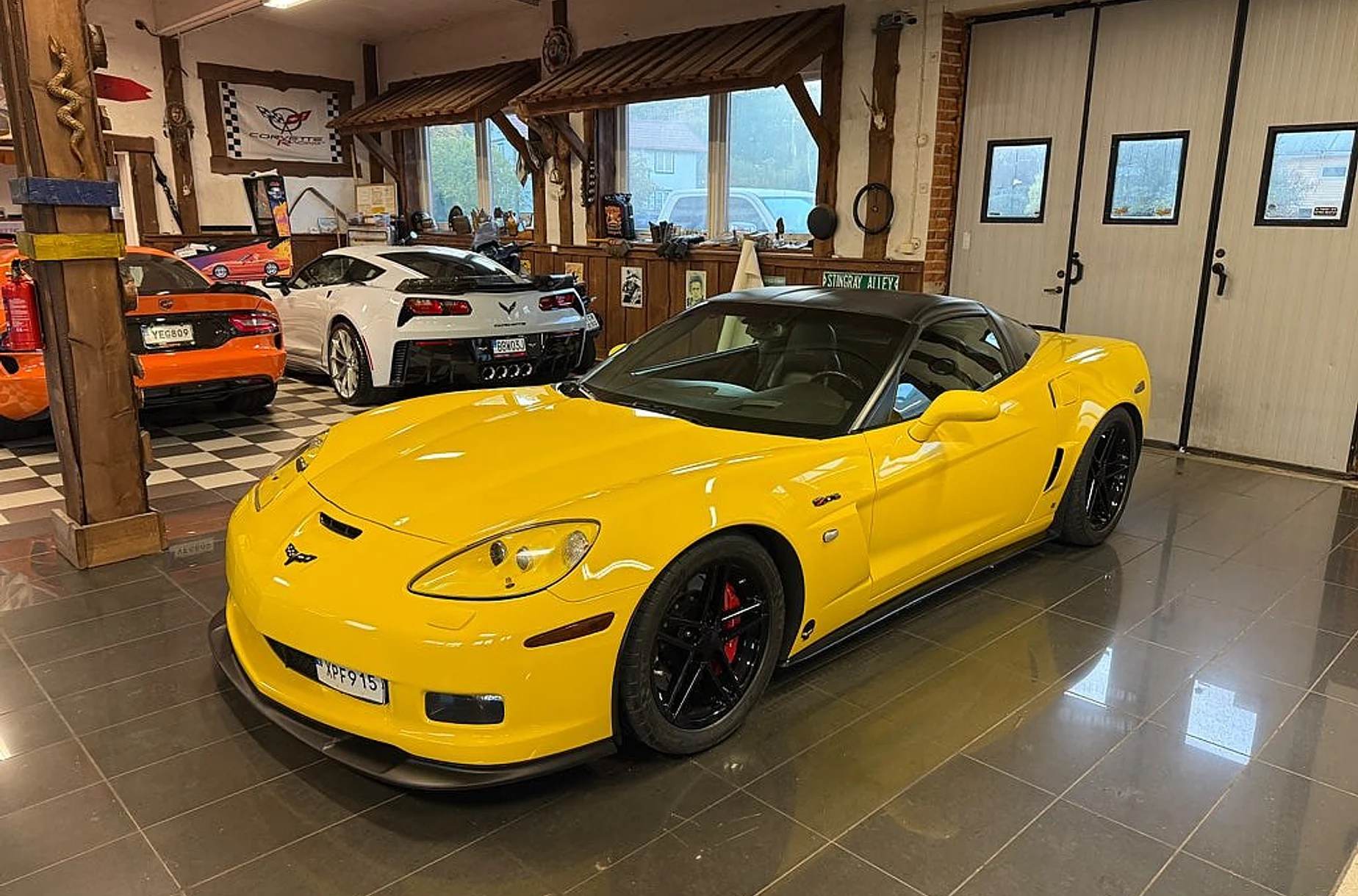 Nu har vi fått in denna brutala svensksålda Corvette C6 Z06 2006 med endast 3800 mil på mätaren i våran butik, LS7-motor på ca 600 HK som har den rätta gången med lite vassare kam, msd atomic airforce insug med 102 mm spjällhus, vassare steg 2 kam med hårdare ventilfjädrar samt rullvippor, k&n cold air intake, kooks long tube headers med racekatalysatorer och x-pipa, rps dubbelskivig koppling, pfadt coil overs och pfadt krängningshämmare, 6-vxl manuell låda med b&m shortshifter, 18"/19" svarta fälgar, zr1 sidokjolar och frontsplitter, 2-delade bromsskivor, alpine stereo, folierat tak, Svensksåld, finans ordnas, pris 539000 kr