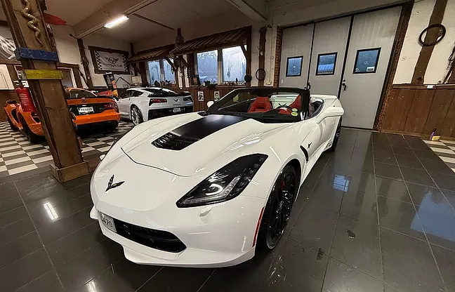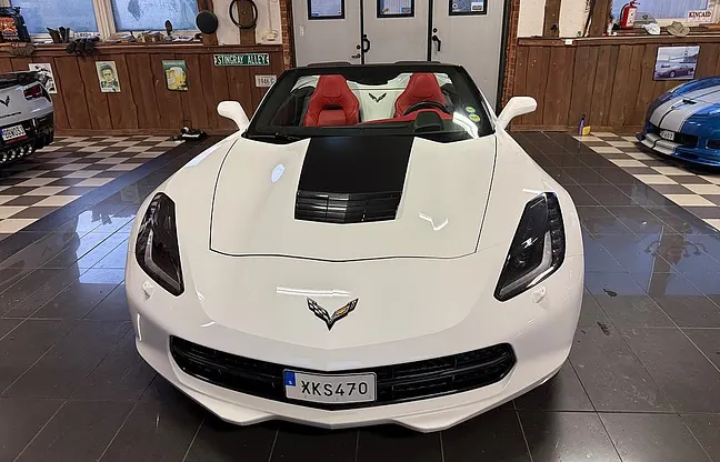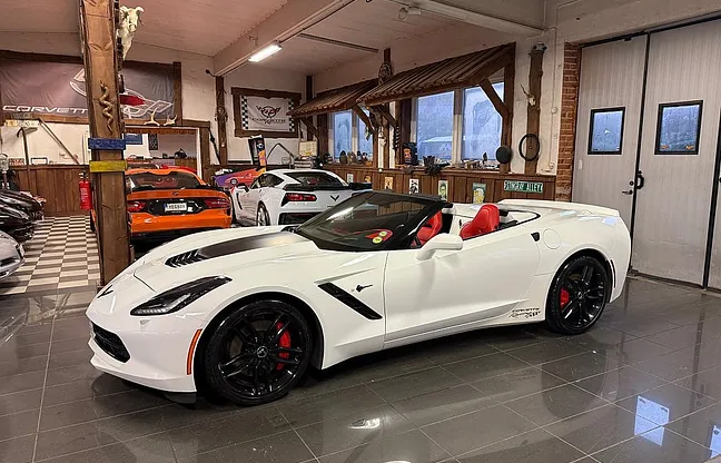 Nu har vi fått in denna snygga Corvette C7 3LT Z51 Cab 2014 i våran butik, lt1-motor på 466 HK, automatlåda med paddlar, svarta 19"/20" fälgar, 3LT-paket, Z51-paket, GT-stolar, mild to wild avgas, röda bromsok, finans ordnas, pris 769000 kr