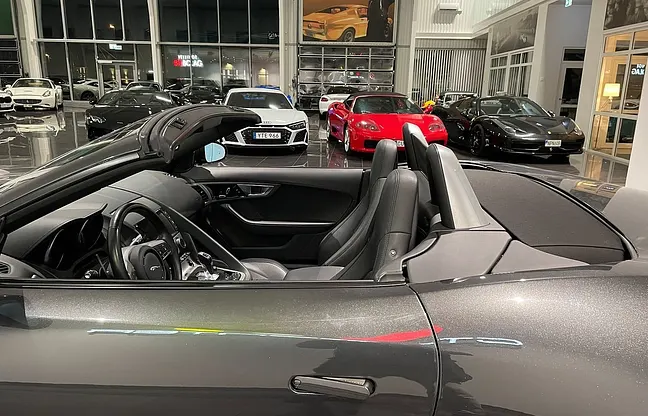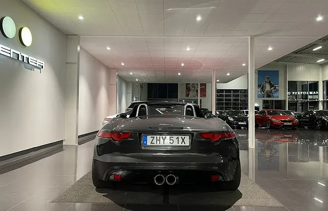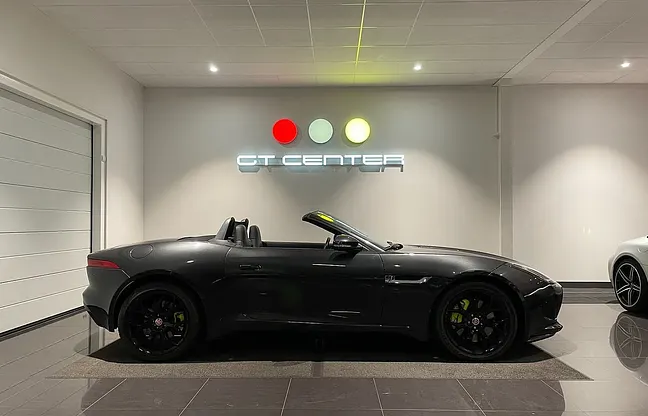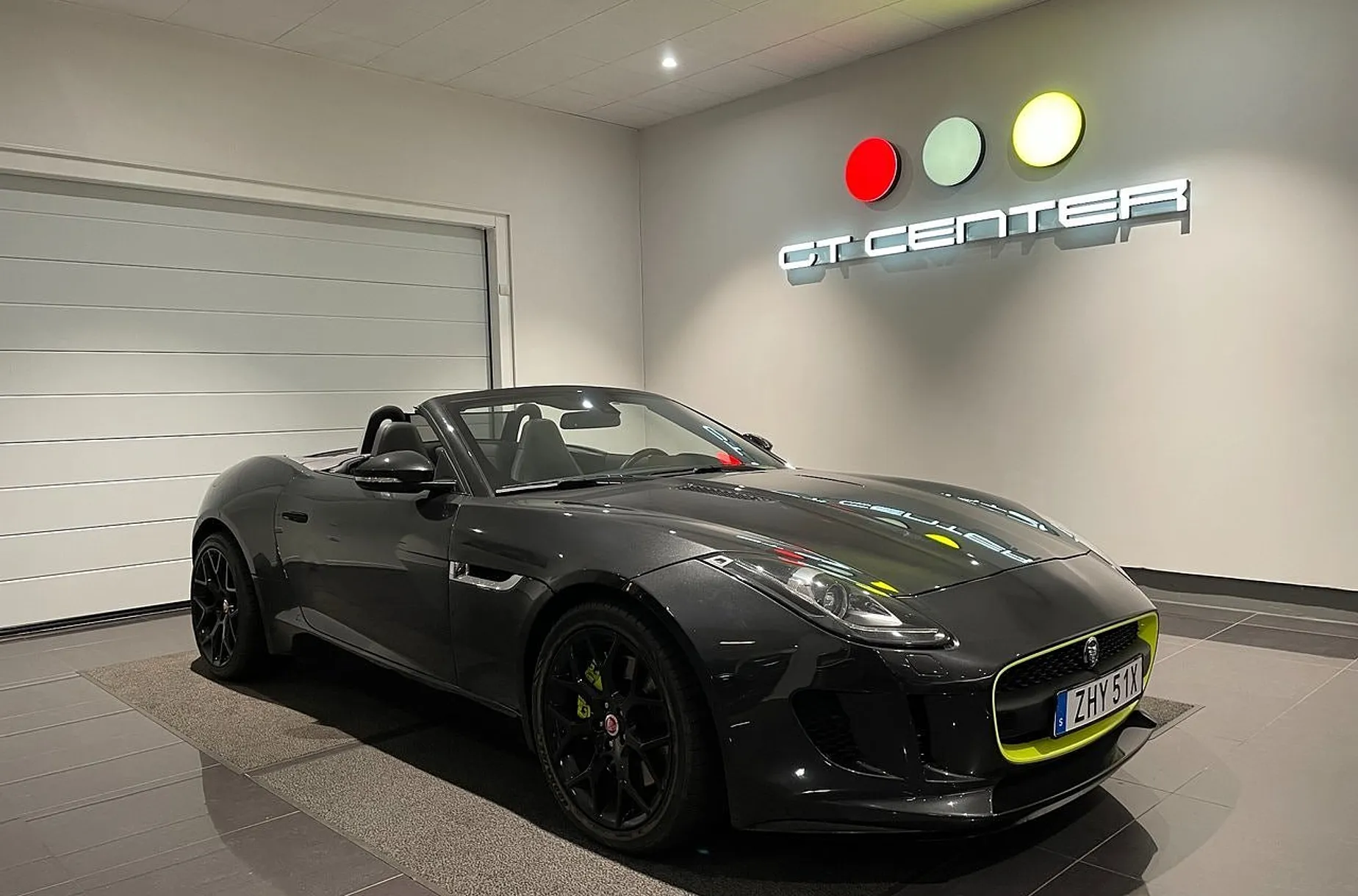 Mörkgrå metallic med Svart läder, F Type, Elektrisk svart tygsufflett, Aktivt sportavgassystem av och på med knapptryckning, Automatiskt avbländbar innerbackspegel, Satin chrome interiörpaneler, Överrullningsskydd i satin chrome, Adaptiva xenonstrålkastare, Parkeringshjälp fram och bak, 8-växlad automatlåda med växlingspaddlar på ratten, Sportfjädring, Touchscreen, Start/stopp automatik, Svankstöd, Elinfällbara sidospeglar, Däcktryckskontroll, Isofixfästen för montering av bilbarnstol, Vi hjälper gärna till med förmånlig finansiering både privatavbetalning och företagsavbetalning, Välkommen att kontakta oss för mer information.