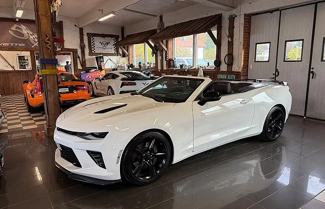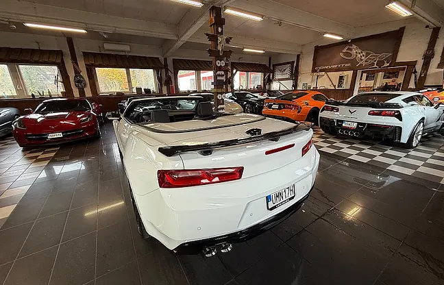 Nu har vi fått in denna snygga svensksålda Camaro Ss Cab 2018 i våran butik, lt1-motor på 460 HK, 8-vxl automatlåda med paddlar, 20" fälgar, brembo-bromsar, finans ordnas, pris 559000 kr