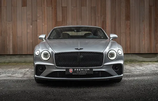 En fantastiskt smakfullt specificerad Bentley GT Coupe W12 med 635 hk i Hallmark silver metallic med beige utökad läder interiör med ljus kontrastsömmar, Innertak i alcantara, Sportstolar, Sportratt med värme, Matrix LED strålkastare i diamant design utförande, Intelligent stötdämparsystem inkl luftfjädring, 21" Bentley lättmetallfälgar, Bentley soundsystem, Aktiv assistent, 360 graders kamerasystem, Bentley navigationsystem, Digital cockpit, Adaptiv farthållare, Parkeringssensorer, Ljusassistent, Drive mode select, Massage i stolar, Elstolar med minnespaket, Headup display, Night vision, Sätesklimatisering, Dödvinkelassistent, Bentley roation display, Thermo komfort glas, Keyless go, Elbaklucka. Bilen är nu fotograferad med vinterhjul. Mycket god historik.