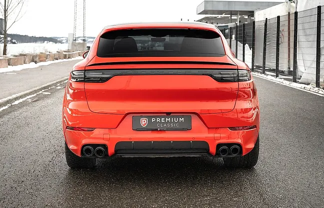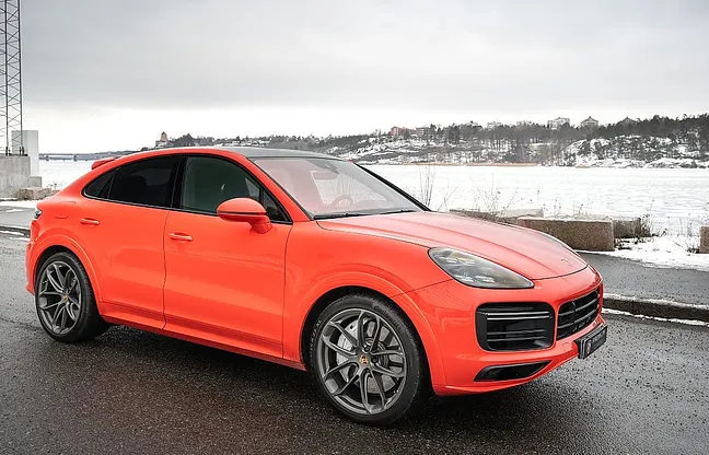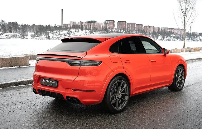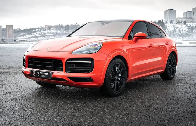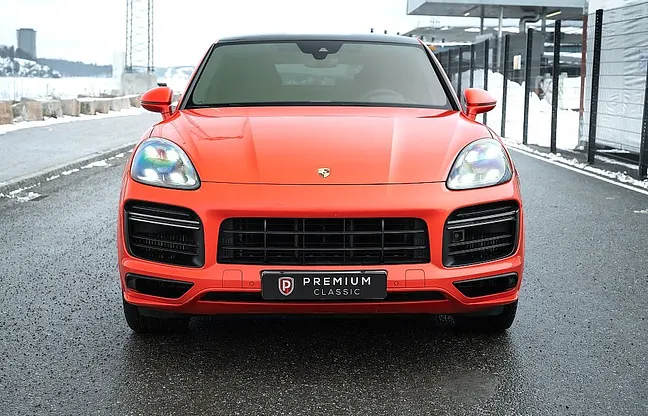 En Svensksåld och mycket välvårdad Porsche Cayenne Turbo Coupé 550hk i den ovanliga smakfulla specifikationen Lava Orange med svart läderklädsel med pepita inlägg och med mycket bra utrustningsnivå! Stenskottsskyddad (ppf) på stötfångare, lyktor fram, huv, framskärmar, backspeglar, sidokjolar/sparklådor, bakskärm vid däck, tak, takspoiler och insteg bagage. Fjärrsyrd bensinvärmare, Dragkrok 3500kg, 22" Porsche GT Design sommardäck, 20" Porsche alu dubbdäck på vinterhjulen ( Svarta på bild), Bakaxelstyrning, Sportavgassystem, Adaptiv luftfjädring, Bose Surround 14 högtalare, Backkamera, Night Vision Assist, Lättviktssportpaket, Adaptiva sportstolar (18-vägs), SportDesign-paket, Sport Chrono-paket, Lättviktstak i kolfiber, Nivåreglering, Soft close, LED Matrix strålkastare i svart, PASM, PVTSP, 12.3" touchscreen, Apple CarPlay, Porsche Torque Vectoring Plus, Porsche Dynamic Light System Plus, Porsche Surface Coated Brake, Porsche Communication Management, Lane Change Assist, ParkAssist, Navigation, Eluppvärmd multifunktionsratt, Aktiva krängningshämmare (PDCC), Interiörpaket i kolfiber, Head-Up Display (HUD), Tonade bakljus inkl ljuslist, Läderinteriör svart/silver pepita, Innertak i Alcantara, Ljuspaket (ambient lightning), Elbaklucka med komfortöppning, Adaptiv bakre spoiler på baklucka, 12V-uttag, ABS, ACC, Airbag fram, Android Auto, Antispinn, Apple CarPlay, Förarassistans, Avbländande innerbackspegel, Avstängningsbar airbag passagerare, Backkamera, Backstartshjälp, Barnlås, Handsfree, anslutning, Broms-assistans, Centrallås, Delbart baksäte, Digitalt mätarhus, Dragkrok, Elhissar (fram och bak), Elinfällbara sidospeglar, Elektriska säten med minne, Elstol passagerare, Eluppvärmd vindruta, Elektriska sidospeglar, Euro 6, Euro NCAP 5, Fartbegränsare, Adaptiv farthållare, Fotgängardetektion, Fällbara baksäten, Färddator, Navigation, Head-up display, Isofix, Keyless go, LED-ljus, Ljussensor, Läslampa, Motorvärmare, Multifunktionsratt, Nattseende, Parkeringssensor fram, Regnsensor, Sportstolar, Start-/stoppfunktion, Startspärr, Larm, Svensksåld Uppvärmda säten fram och bak, Tonade rutor, Touch-/Pekskärm, Trötthetsvarnare, Uppvärmda spolare, USB-uttag.