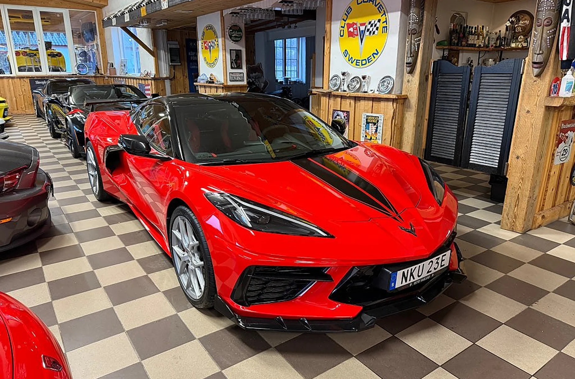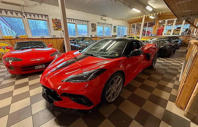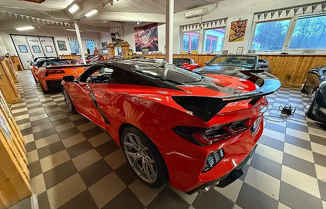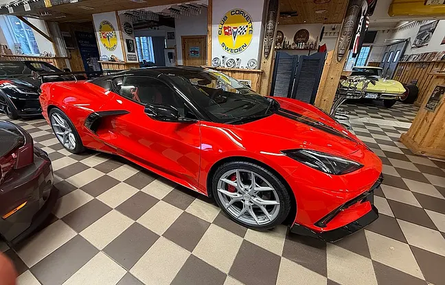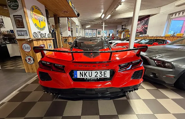 Nu har vi denna häftiga Corvette C8 3LT Z51 Vossen launch edition coupe 2022 till salu, Låg Skatt på 4012 kr per år, 6.2 liters V8 på 482 HK, 8-vxl dubbelkopplingslåda, 3LT-paket, Z51-paket, sportstolar, targa-tak, high-wing, folierat tak och stripes, nyservad 20250820, 19"/20" Vossen hybrid forged fälgar, två-färgad inredning, finans ordnas, pris 1099000 kr