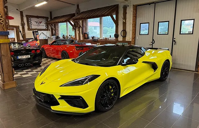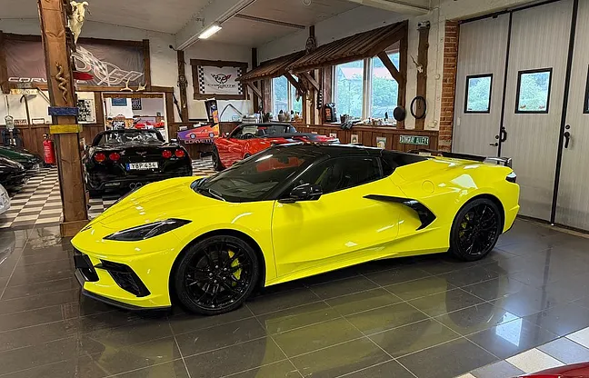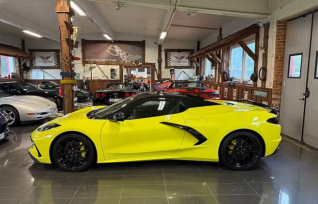 Nu har vi denna häftiga Corvette Stingray C8 Z51 3LT Stingray Cab 2023 på väg in i våran butik. 6.2 liters V8 på 482 HK, 8-vxl dubbelkopplingslåda, 19"/20" gloss black wheels, carbon flash accent package