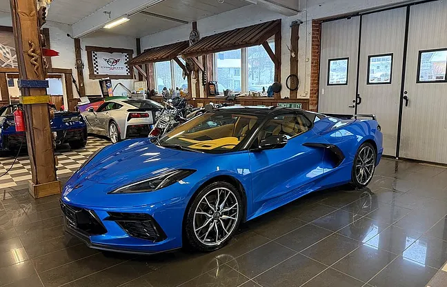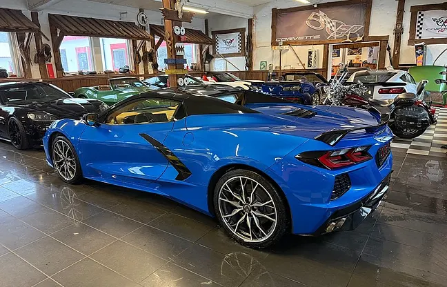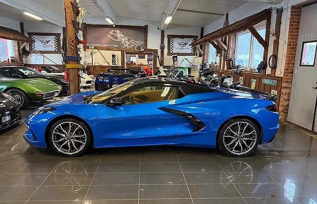 Nu har vi fått in denna häftiga Corvette C8 3LT Z51 riptide blue metallic Cab 2024 i våran butik, 6.2 liters lt2-motor på 482 HK, 8-vxl dubbelkopplingslåda, 3LT-paket, Z51-paket, magnetic ride, mild to wild avgas, carbon flash accent package