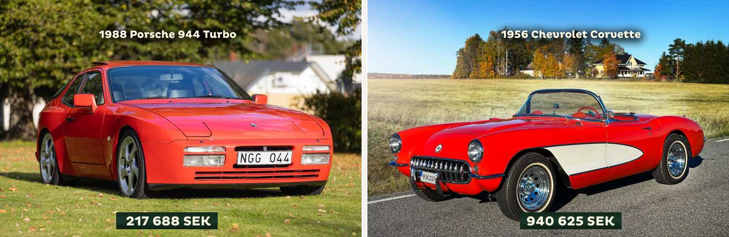 Årets mest sålda modeller på Bidders Highway visar på en tydlig bredd i entusiastintresset. Ford Mustang tog förstaplatsen och bekräftade sin ställning som en evig publikfavorit. Strax därefter följde Porsche 944, en modell som fortsätter att vinna både nya och erfarna entusiaster. På tredje plats hamnade Chevrolet Corvette – ett tydligt tecken på att klassisk amerikansk prestanda fortfarande står stark på auktionsmarknaden. Dessutom såldes en Corvette C3 till Europarekord, strax under 700.000 SEK.